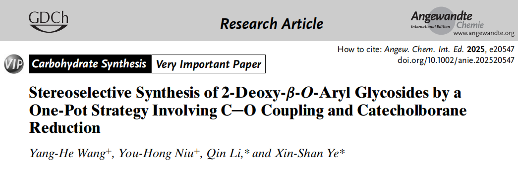 Angew Chem|叶新山团队发展了基于碳-氧键偶联和儿茶酚硼烷还原的高效构建2-脱氧-β-O-芳基糖苷的“一釜”策略近日,我室叶新山教授团队在国际著名化学期刊Angewandte Chemie International Edition上发表题为“Stereoselective s...2025-11-04 -