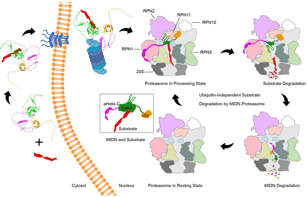 Nat Commun|梁令/林志强合作揭示midnolin-蛋白酶体介导的泛素非依赖性蛋白质降解机制蛋白质稳态维持是细胞生命活动的核心,而蛋白酶体是其主要的“垃圾处理厂”。传统观点认为,蛋白酶体通过识别泛素链标记的底物启动降解。然而,近年来研究发现,部分细胞核蛋白,...2026-03-30 -